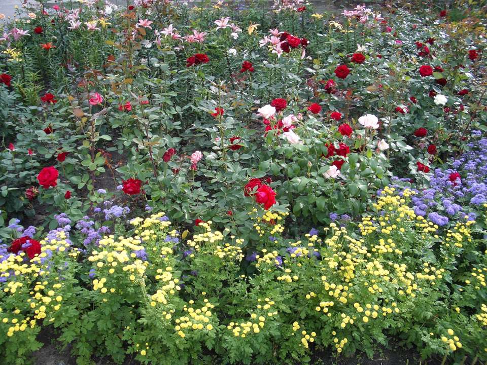 Фотографии/фото/цветы/клумба/розы/лилии