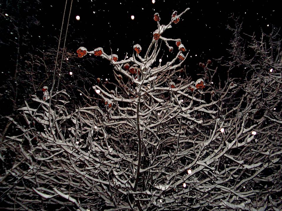 Фотографии/фото/зима/ночь/деревья/рябина/снег/иней/ветви