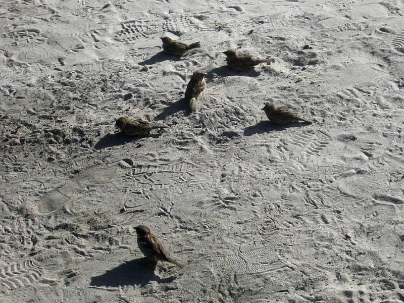Воробьи купаются в пыли