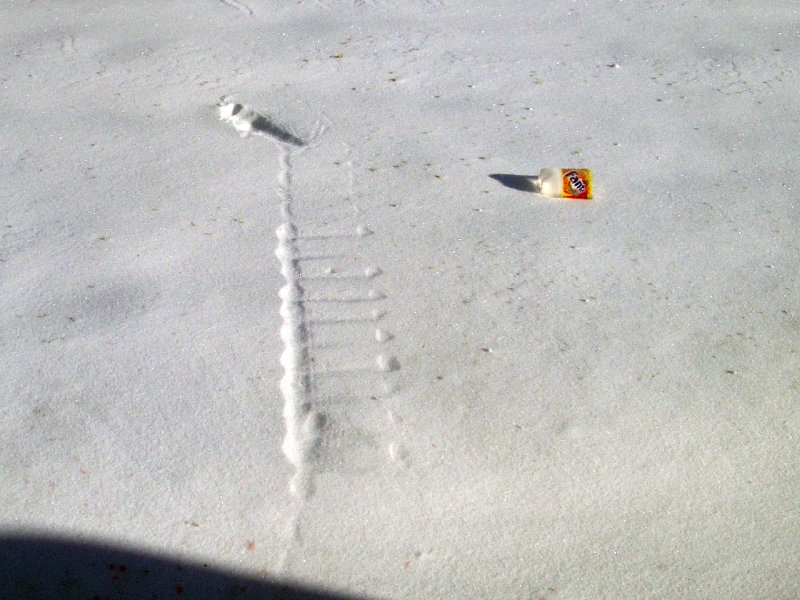 След от бутылки на снегу