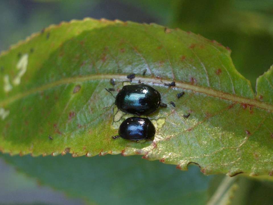 Жуки едят лист