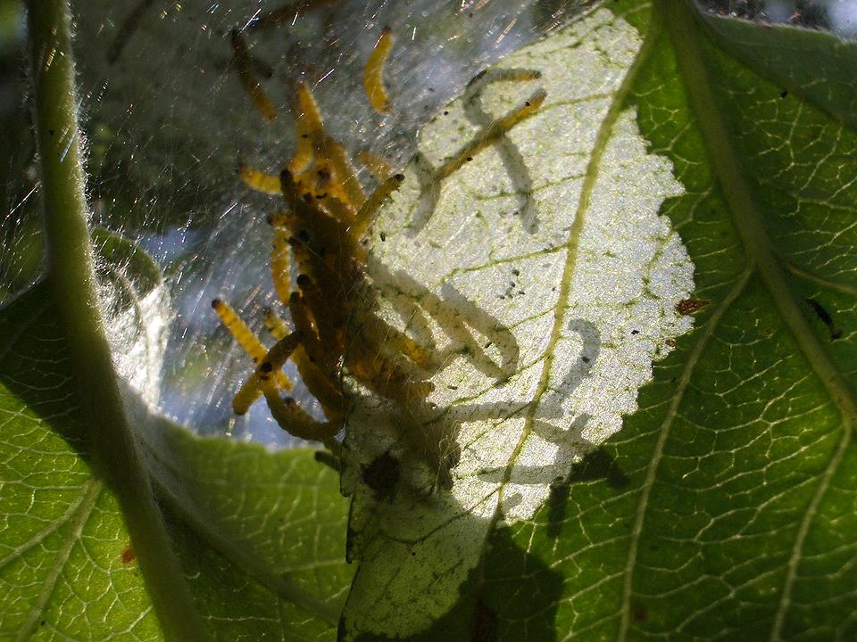 Готовятся кушать листья... Фотографии/макро/листья/паутина/червяки